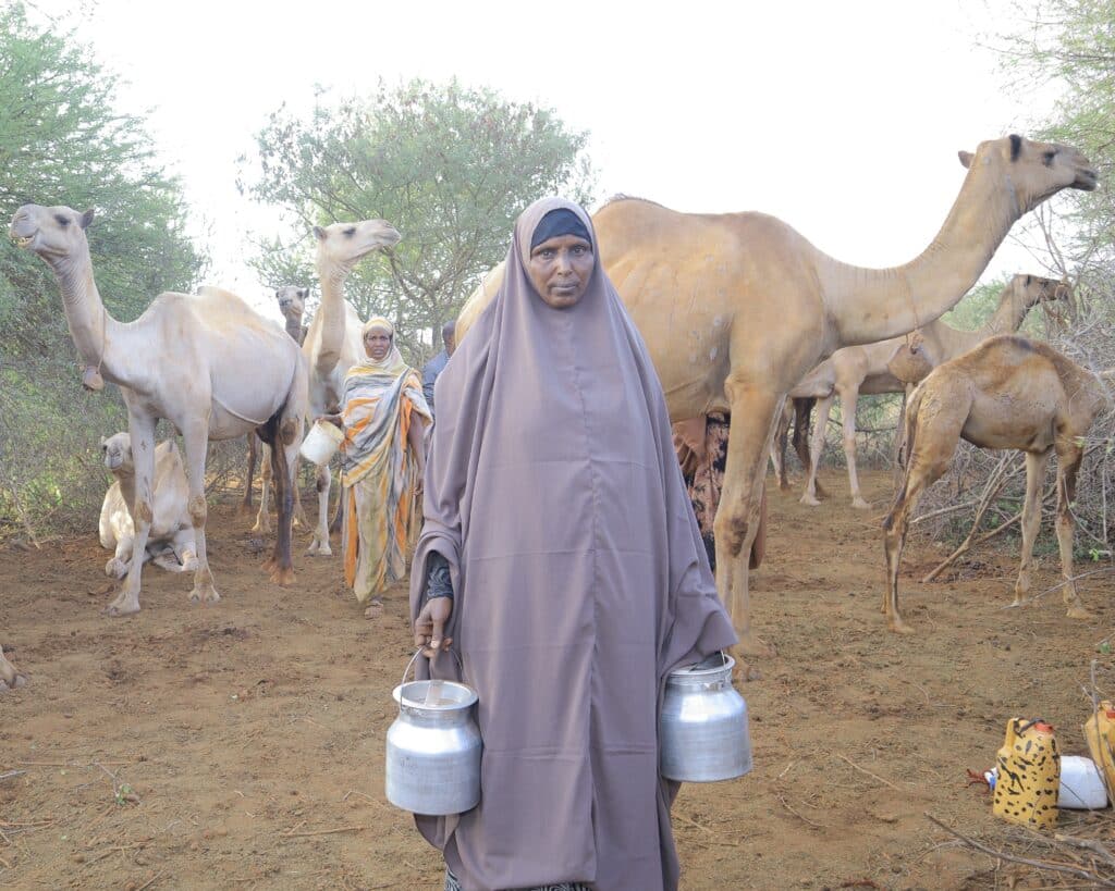 Kadija, a 50-year-old woman from Moyale, Ethiopia, joined the camel milk cooperative to overcome seasonal poverty and uncertainty. She recalls: